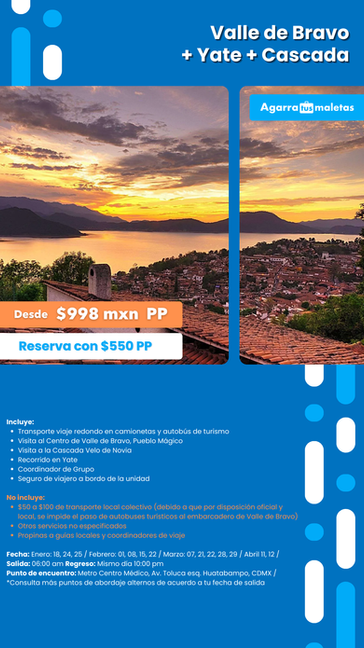 Todos los tours están sujetos a disponibilidad hasta el momento de su reservación. Se actualizan cada mes.